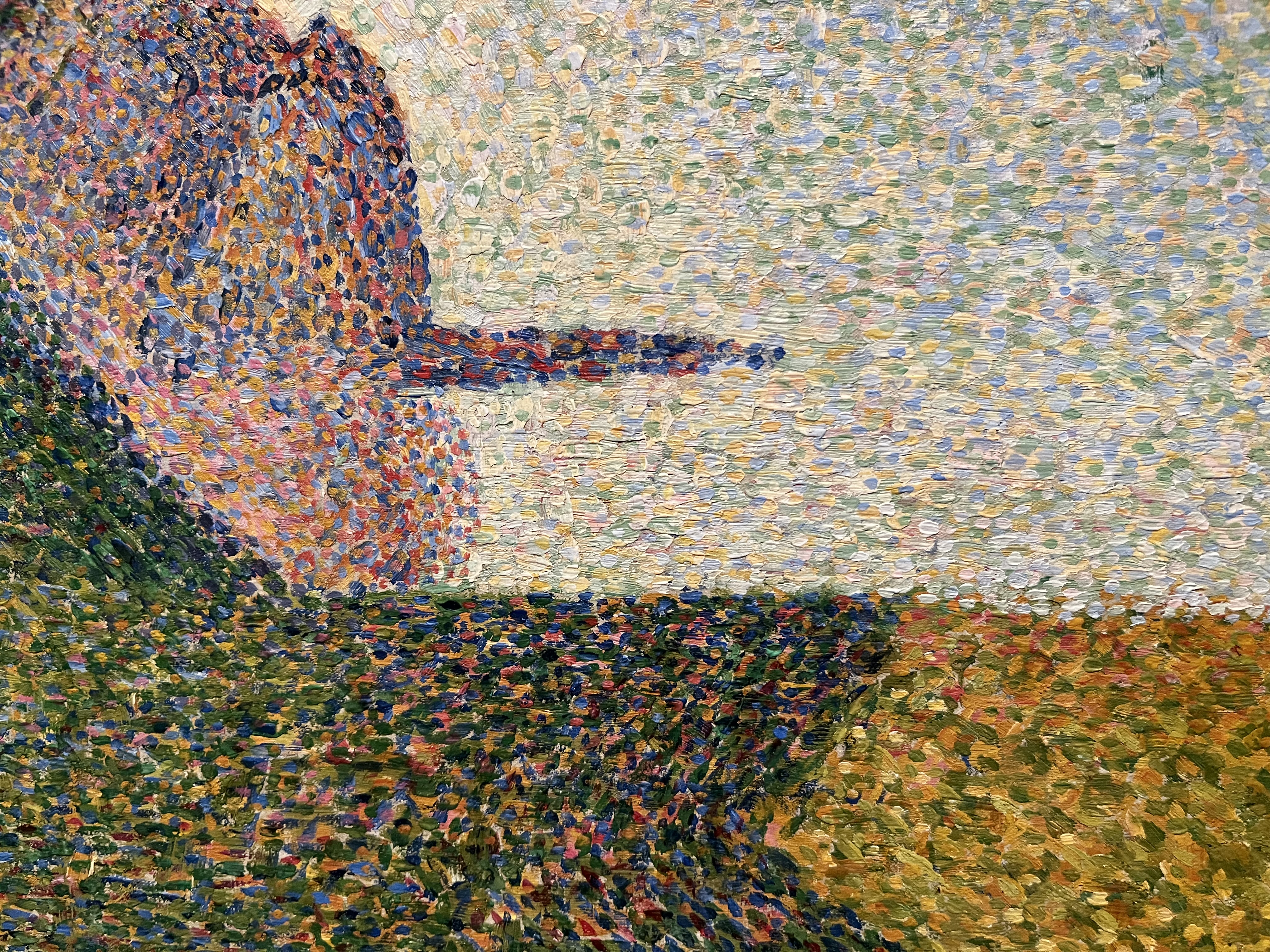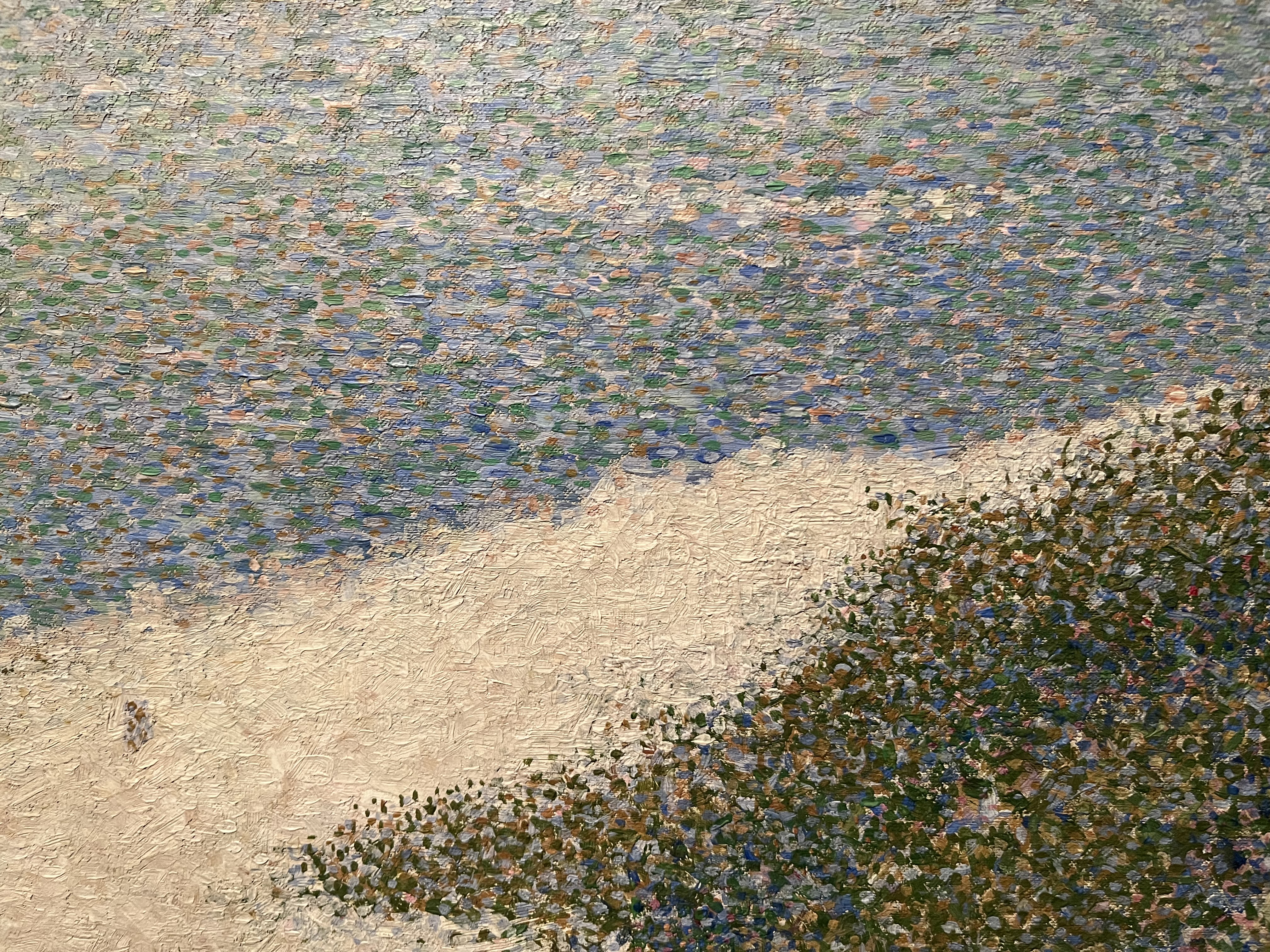 Butinin rannalla Honfleurissa vuonna 1886 maalatussa työssä ”Rivage de Bas-Butin” näkyvissä ovat hiekkaa kuvaavassa kohdassa pohjakerroksen ristikkäiset pensselinvedot. Työn omistaa ”Musée des Beaux-Arts de la Ville de Tournai”. Photo: Auli Valpola