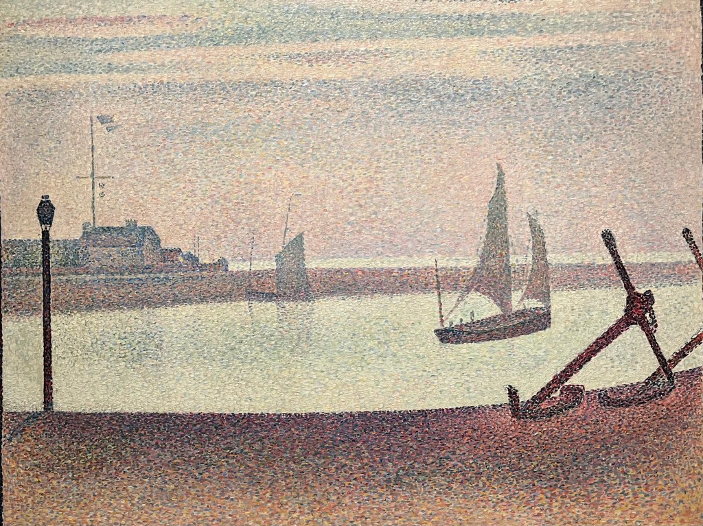 Seurat siirtyi viimeisenä kesänään 1890 maalaamaan Pohjois-Ranskaan, Gravelinesiin, jossa oli vähemmän turisteja kuin hänen aiemmin suosimassaan Normandiassa. Teoksen ”Le Chenal de Gravelines, un soir” omistaa The Museum of Modern Art, New York. Photo: Auli Valpola